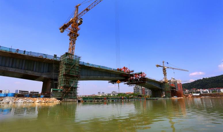 虹云橋連接桃花島和沈家壩片區(qū),為城南新區(qū)規(guī)劃的配套項(xiàng)目,起于桃花島,上跨涪江、芙蓉路,終點(diǎn)接綿鹽路,橋梁全長(zhǎng)497米,其中主橋設(shè)計(jì)為83米+110米+83米三跨波形鋼腹板連續(xù)梁,橋梁寬度18米,設(shè)計(jì)行車(chē)時(shí)速20公里。項(xiàng)目建成后將加強(qiáng)城南片區(qū)與沈家壩片區(qū)的交通聯(lián)系,改善桃花島片區(qū)的出行條件,緩解涪江三橋的交通壓力。