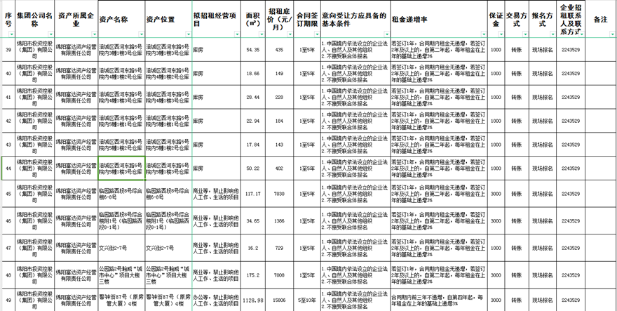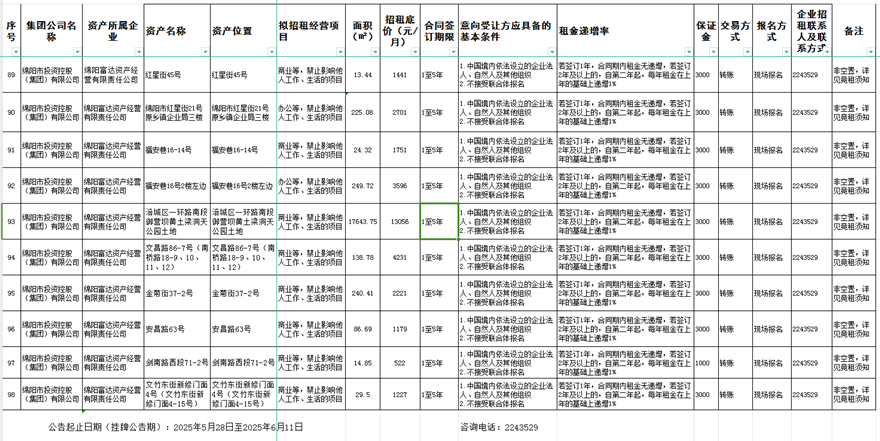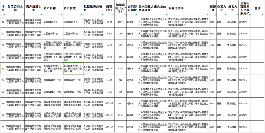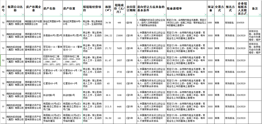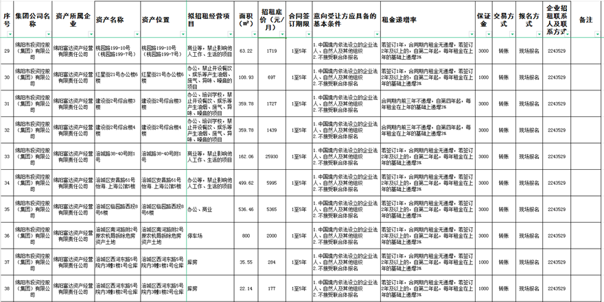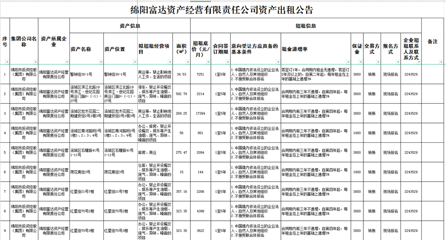 綿陽富達(dá)資產(chǎn)經(jīng)營有限責(zé)任公司資產(chǎn)出租公告
