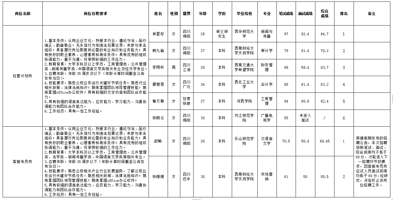 【公開招聘】綿陽市城市停車管理有限公司 關于招聘經營計劃崗等崗位測試成績的公示