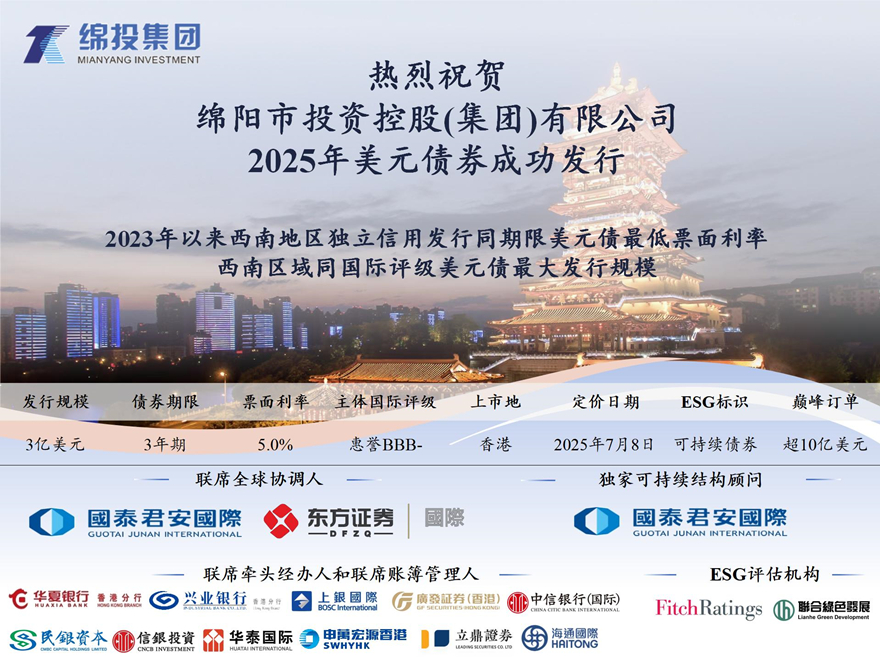 綿投集團成功發(fā)行2025年境外可持續(xù)美元債