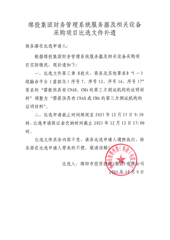 綿投集團財務管理系統(tǒng)服務器及相關設備采購項目比選文件補遺