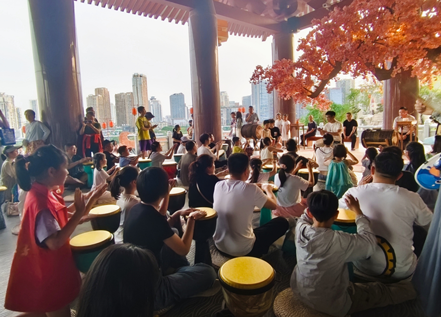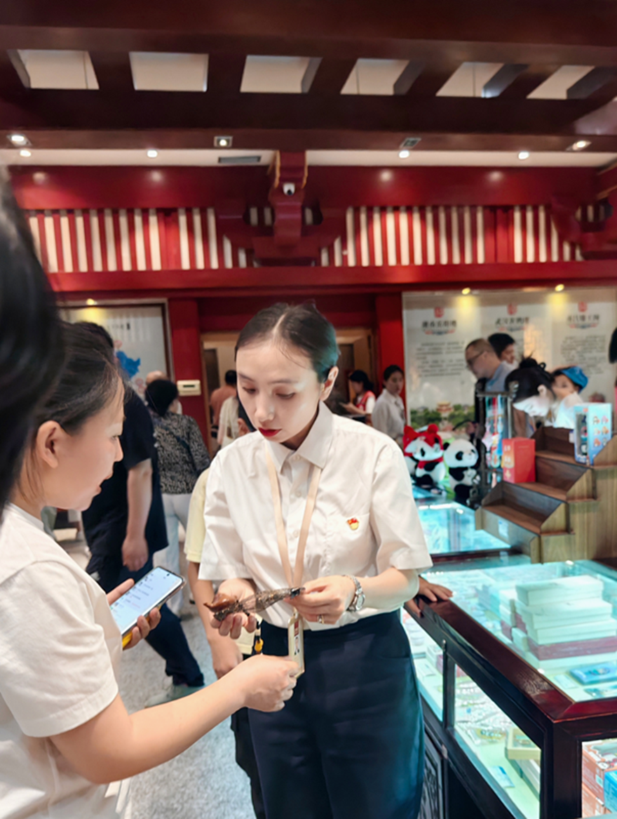 “五一”期間,景區(qū)在龜山打造“非遺工坊”,推出“漆扇制作—草編體驗—詩詞題寫—場景打卡”一體化體驗鏈,可參與、可帶走、可傳播,突破“靜態(tài)展示”傳統(tǒng)模式,通過“活態(tài)傳承+互動賦能”推動非遺文化創(chuàng)造性轉(zhuǎn)化,每天吸引逾千人次游客參與。